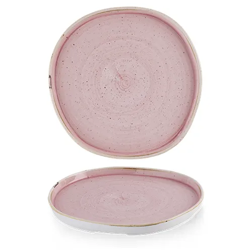 The Churchill Stonecast Petal Pink Organic Walled Plate, measuring 25.5cm (10 inches), is part of the Stonecast collection by Churchill China. This range is inspired by the changing seasons and fresh ingredients, offering subtle rustic textures and individual character. Each plate is hand-decorated, resulting in unique variations in finish and colour due to the artisan process.