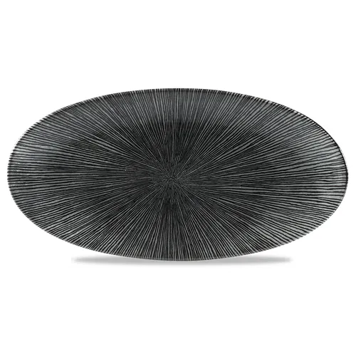 The Churchill Studio Prints Agano Black Oval Chefs’ Plate is part of the Studio Prints Agano collection by Churchill China. Designed for professional catering environments, the plate measures 17.3 x 34.7cm (6.75 x 13.63 inches). Its oval shape is suited to modern presentation styles, allowing for creative food plating in restaurants and hospitality settings. The surface features a black speckled effect that is achieved through under-glaze decoration, making each piece unique while maintaining consistency in quality and durability.