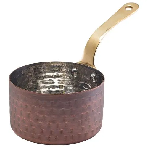 The GenWare Antique Copper Mini Sauce Pan (9 x 5.25cm) provides a charming and elegant way to serve individual portions of sauces, condiments, or small sides. Its attractive antique copper finish offers a rustic yet sophisticated aesthetic, perfectly complementing various dining settings. This durable mini sauce pan is designed for both delightful presentation and practical use.