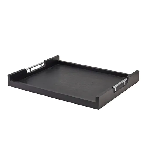 GenWare Solid Black Low Wall Butlers Tray with Metal Handles 54.5 x 44cm/21.5 x 17″