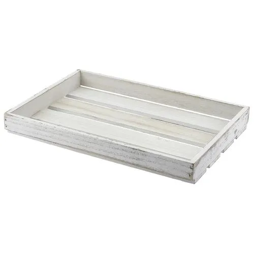 Product Catalogue > Front of House > Buffet & Food Display > Cake Stands > GenWare White Wash Wooden Crate 35 x 23 x 4cm/13.8 x 9.1 x 1.6″