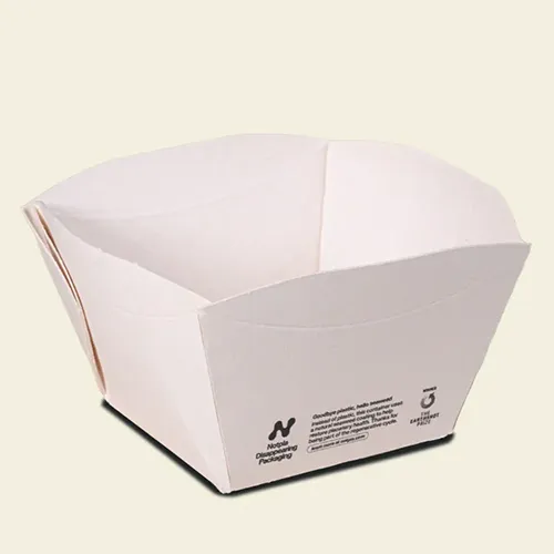 A white finish version of the 550ml open food box suitable for meal portions and takeaway dishes. Offers a clean presentation while maintaining strength and grease resistance.