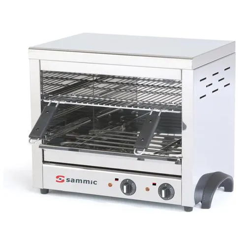 The Sammic SGF-450 Salamander is a powerful appliance for professional kitchens, featuring a 3600 W heating element and a height-adjustable shelf. This salamander is perfect for restaurants and catering services, offering efficient and versatile overhead heating.