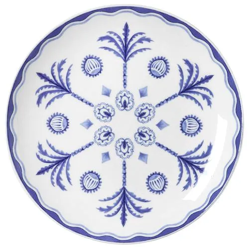 The plate is made from professional quality ceramic, providing good resistance to everyday use and frequent washing. Its coupe design means a smooth, gently curving edge, suitable for a range of food presentations such as main courses, starters, desserts, or side dishes. The plate’s blue decoration is inspired by classic botanical motifs, giving it a distinctive appearance suitable for both casual and formal settings.